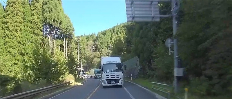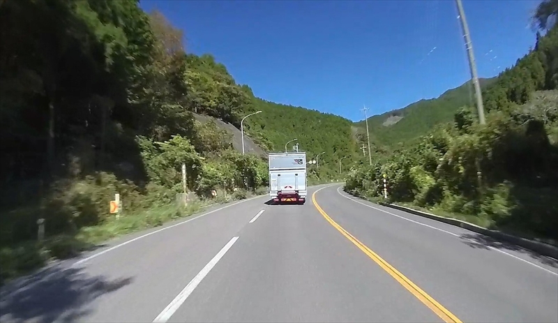 私が運転する車が峠道に差し掛かった時、一台のトラックに追い付きました。