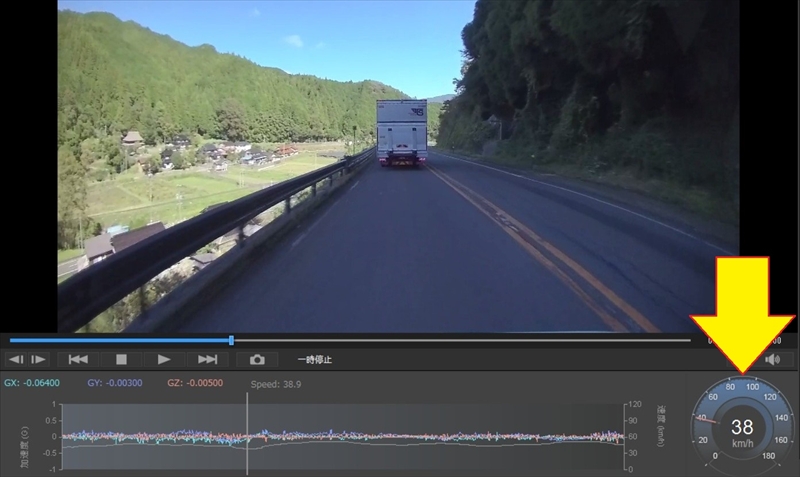 峠を登り切って下り車線に差し掛かると、更に低速度の 35~40km/h になりました。