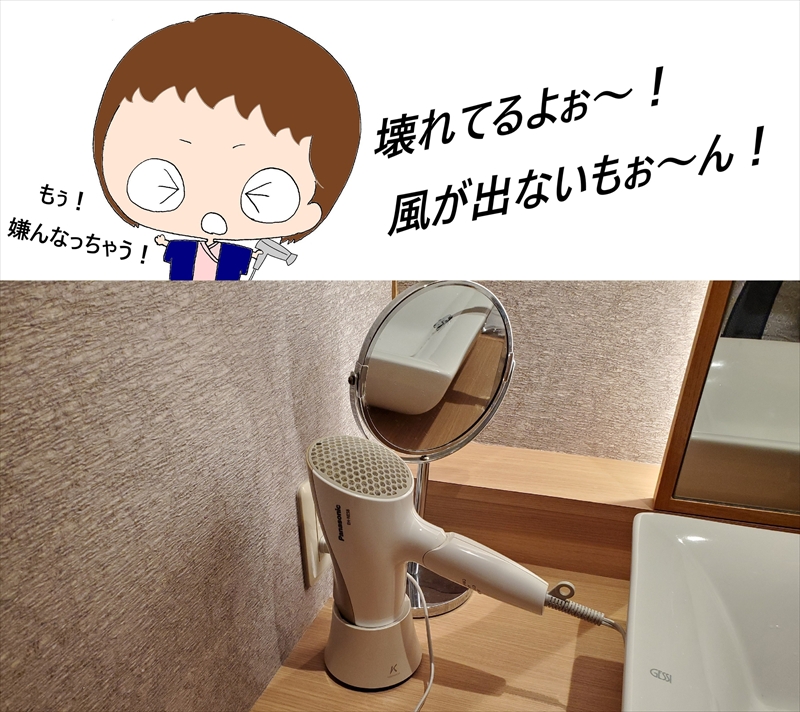 風呂上りにお部屋でくつろいでいると、ちびさんが「ドライヤーが壊れてるよぉ~!」とお怒りモードになりました。
