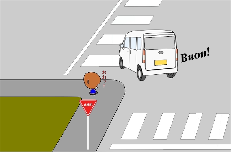 先日、私の車の前を走行していた車が一時停止標識を無視して左折しました。