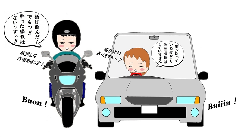 ということで今回は、飲酒運転で物損事故を起こして「言い分」を主張する20代の女性ドライバーと20代の男性ライダーのお話です。